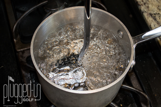 Boiling the club also gets everything hot enough to remove the shaft. I decided to pull the shaft this way because 1) I already had the water boiling and 2) this preserved the ferrule.