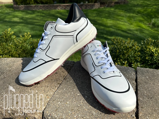 Plugged In Golf – and our readers – have been wise to Duca del Cosma golf shoes for several years [reader reviews HERE], but something is very different in 2023. New for this year are Duca del Cosma’s first spiked golf shoes. Available for both men and women in two styles each, these shoes promise to add Tour-level performance to Duca del Cosma’s elevated style.