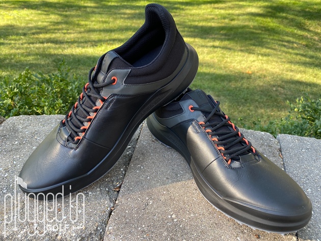 The Ecco Golf Core is one of the best looking golf shoes I’ve reviewed in a while.  At a glance, it has very sleek lines, and the high quality materials give it a dressy, traditional look.  A second look allows you to notice the pop of color around the laces and the mix of materials that give it a slightly sporty vibe.  Looking down at them, I really like the streamlined silhouette.
