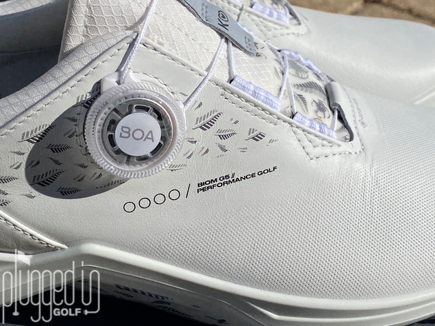 Trying on new shoes can be a frustrating experience, often leaving us asking, “Is this shoe uncomfortable, or does it just need breaking in?” The moment I put the Biom G5s on and turned the dial, my jaw dropped. My standards for trying on new shoes have permanently shifted upward. Granted, these are my first pair of laceless golf shoes, but this technology is a game changer. If the shoes feel slightly loose, you can reach down and turn the dial a click or two in a couple of seconds. This is more efficient and more precise than lace-up shoes.