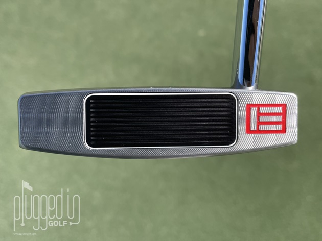 The technology behind the consistency – SweetFace – is what Evnroll was founded on. While most putters have a sweet spot, Evnroll groove design extends that spot across the full width of their patented milling pattern. It’s difficult to see in the photo above, but the v shaped grooves vary in width – wider in the center and narrowing progressively towards the heel and toe. The design keeps ball direction straight off the face with additional energy when off-center. Take another look at the “E” logo and it all starts to make sense.