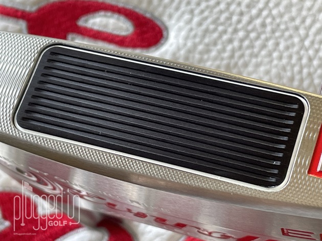 Impact felt very soft, and I wasn’t surprised to learn that there’s a layer of polymer behind the insert. When my club pro Ryan rolled a few putts he exclaimed that he “couldn’t even feel it.” I had the same sensation with centered contact – a testament to the insert grooves and high MOI. The soft grip material also contributed to the soft feel. Location feedback increased slightly away from center.