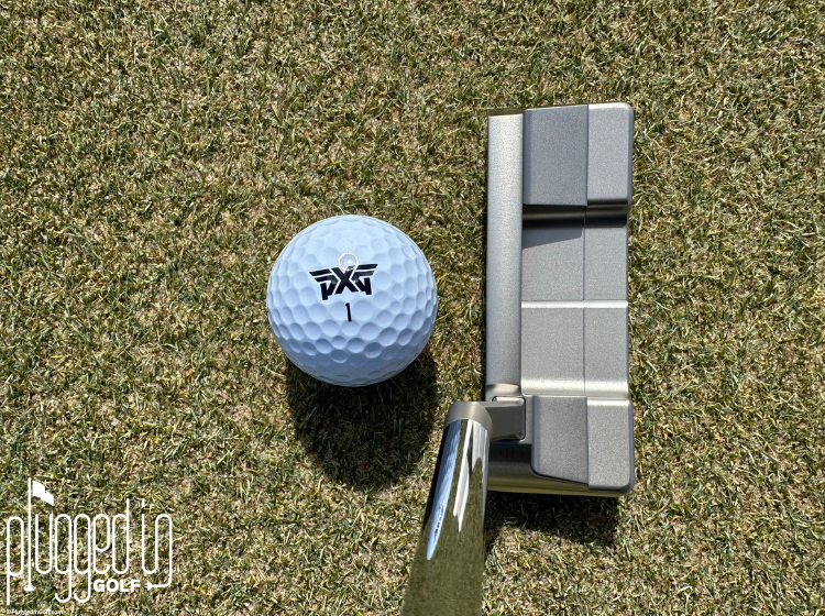 The putter produces a simple, pleasant “pock” sound that is deepest with center contact. Strikes away from that center go a bit higher in terms of sound and will feel firmer, but they don’t ever feel bad. The stock grip is a thicker pistol shape that fills the hand and compliments the feel of the putter by limiting reverberations off of every strike and quieting hands that could get hyperactive.
