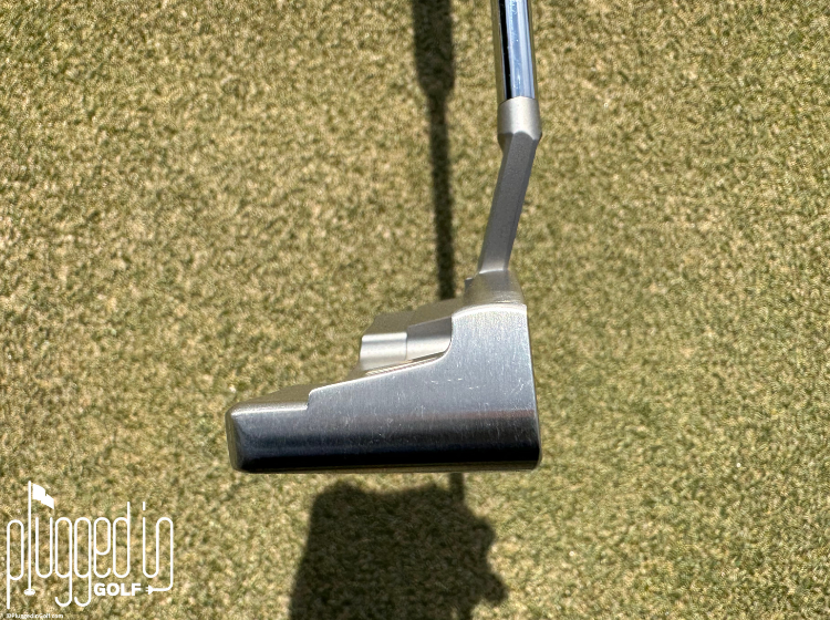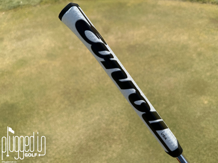 The putter produces a simple, pleasant “pock” sound that is deepest with center contact. Strikes away from that center go a bit higher in terms of sound and will feel firmer, but they don’t ever feel bad. The stock grip is a thicker pistol shape that fills the hand and compliments the feel of the putter by limiting reverberations off of every strike and quieting hands that could get hyperactive.