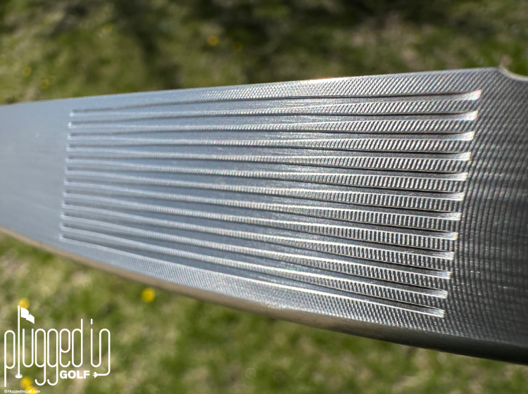 SweetFace is Evnroll’s proprietary face milling, which reduces deflection compared to similarly-sized blade putters. This causes mishits to hold their intended line just like center strikes. Moreover, I found that the same tech had a noticeably positive effect on my speed control. Ball speed was similar from the heel and toe. None of this works if you miss out on the grooves altogether, but you’ve got bigger issues if you’re missing the center of the face that dramatically.