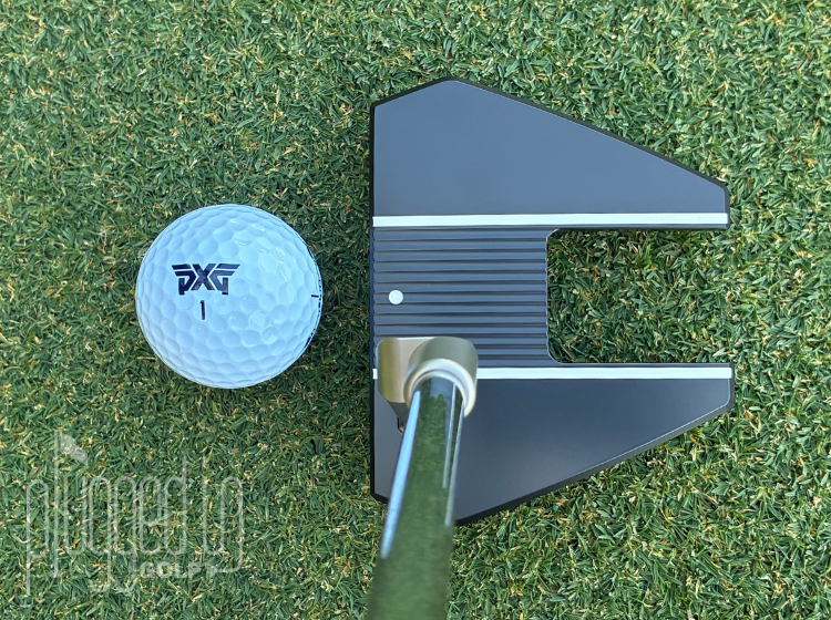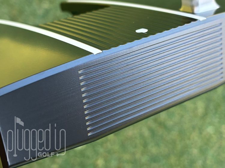 Speaking of alignment, each one of Evnroll’s series of zero torque putters has a consistent set of alignment lines that contain a set of wide grooves in between. The lines are about a ball in width and aim towards the target with a single sight dot in the middle. This did make it easy to know when the ball was setup directly in the middle of the face.