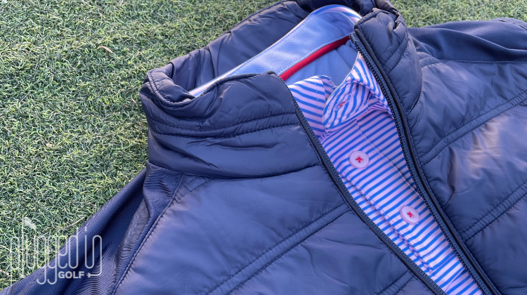 The moisture wicking material came in particularly handy when I walked 18 on a hot October afternoon. I noticed when I finished, I had zero sweat stains anywhere. Two days later, it was cool enough to don the Performance Puffer Vest which provided the extra warmth I needed but still had a spandex liner that ran down the sides to reduce any impediment during a full swing.