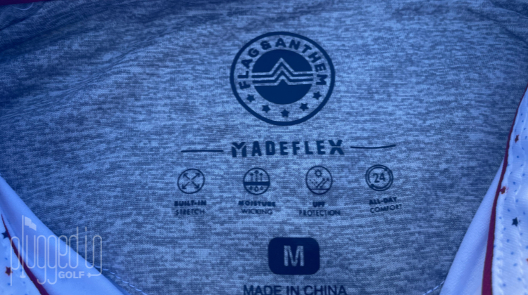 For Flag & Anthem, they designed their own Madeflex performance combination for their polos which are 89% polyester and 11% spandex. I found this material to be very breathable for those hot days with enough stretch to not interfere with any type of swing.
