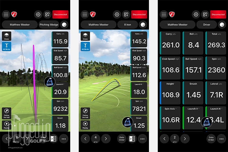 Which brings me to the Mevo+ (above left), which has been retailing for $2,299, but is $1,839 on the FlightScope website as of this writing. Two additional data parameters may not be persuasive reasons for the additional cost, but the six additional simulation courses – including Pebble Beach and St Andrews – may be. The real differentiator between the Flightscope Mevo Gen2 and the Mevo+ is the optional Pro Package only available to the Mevo+. These add-ons provide data like club path, face angle, and swing plane, plus can be upgraded to include face impact and mapping. All-in, the Mevo+ runs $3798 (currently marked down to $2814), fitting into the next tier of launch monitors that fall in the $3000 – $5000 range.