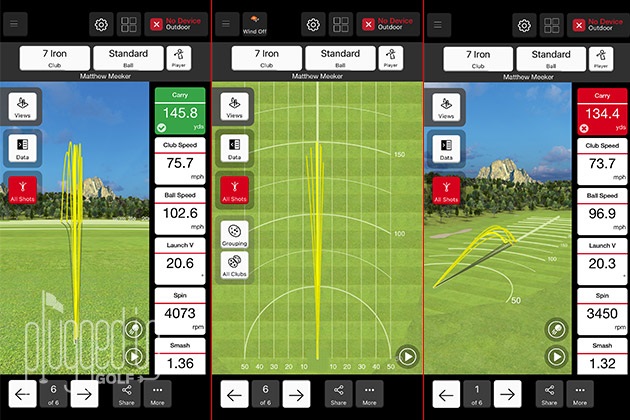It wasn’t until after my first range session that I started to discover its true power. First off, I could choose four views: down the line, top, perspective, or side (not shown above). Second, I could choose to have data blocks displayed or not – and choose the order. And finally I could decide between displaying just the current shot or all of them for that session. Don’t want to save that shank? Delete – so simple.