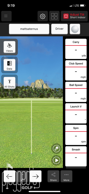 Once your app is connected to the Mevo or Mevo Plus, you’ll go to settings. This is where you’ll input where you’re using the device (Short Indoor, Indoor, Outdoor), how far the Mevo is from the ball, and how much ball flight you have if you’re on Short Indoor. Inputting these parameters doesn’t take more than a minute.