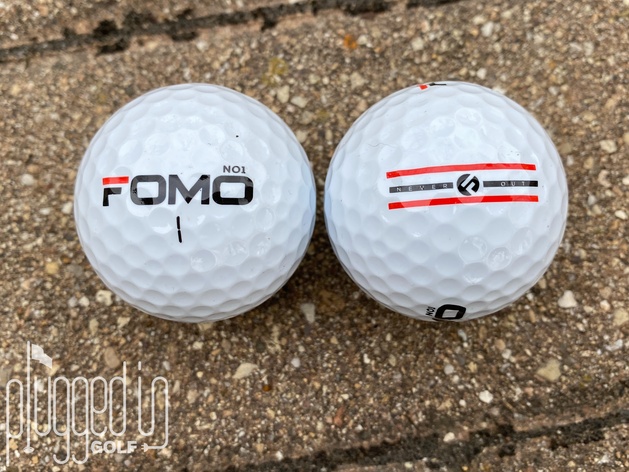 The most expensive FOMO golf ball is the NF1 Never Fear, which is a 3-piece, urethane covered ball. On the green, this ball is very similar to the Pro V1. It’s soft but still crisp, especially on longer putts. At the other end of their range is the NM1 Never Miss. This is a 2-piece ball with a Surlyn cover that is noticeably firmer. It’s “clickier” than the NF1, but the sound is fairly rich, not a cheap, high-pitched click. The middle of the FOMO range is the NO1 Never Out which is a 3-piece ball with a Surlyn cover. Interestingly, this is the firmest, loudest ball off the putter. The NO1 definitely crosses my personal line for being too loud, especially on long putts.