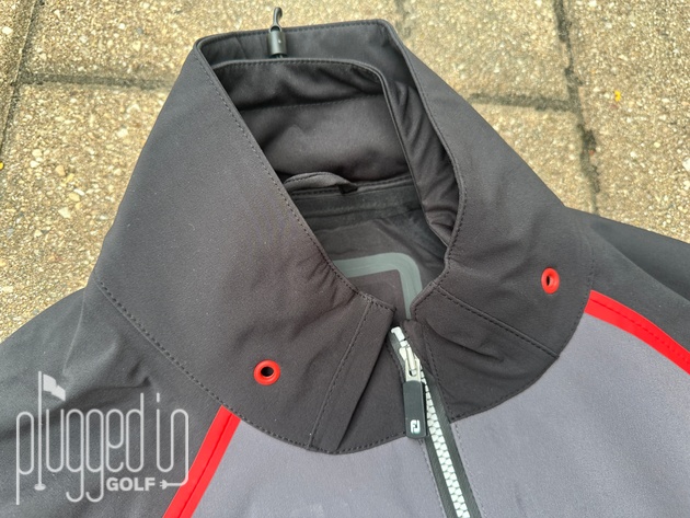 Finally, a feature that’s unique to the FootJoy HydroTour rain jacket is the Golf Collar with DrySeal technology. It’s almost like having two collars in one – one that fits closer to the neck and one that fits more like a traditional rain jacket. What makes this work is that there are two grommets in the outer collar that allows the water to get out the back of jacket rather than running down the back of your neck. It’s one of those features that seems obvious once you’ve seen it, and works just as its designed to.