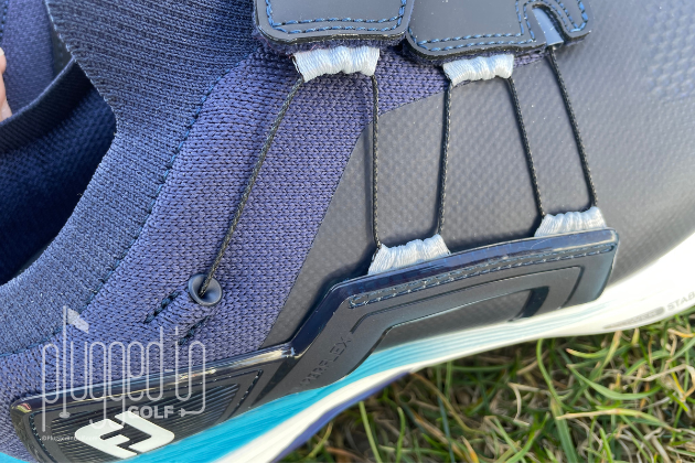 FootJoy is known for comfort and the Hyperflex BOA golf shoes are no different. FootJoy uses a specialized OrthoLite Impressions Fitbed as the insert which molds to your feet and actually becomes more pleasant over time. The knitted material that lines the foot insert makes it easy to get the shoe on and off while the stretchiness makes it natural to walk 18 holes. At first glance, I thought the knit bootie was a recipe for blisters around the ankle, but I quickly found the opposite. The specialized material hugged the top of my foot just right which was both comfortable and added an extra layer of security.