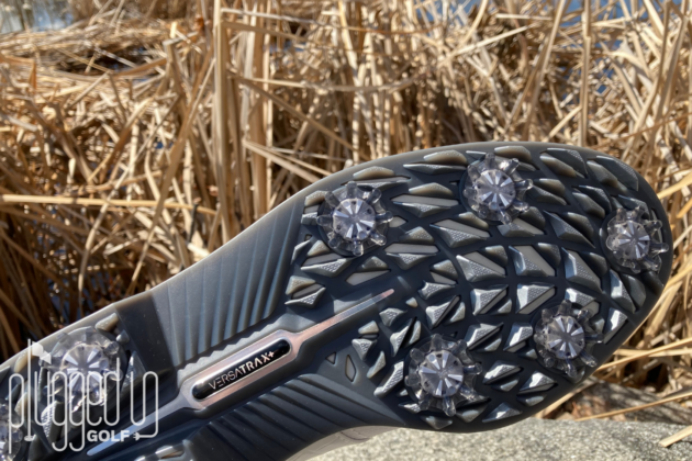 Looking good is fun, but given the choice I think we’d all prefer to play good. FootJoy is right there with you as the Premiere has clearly been built to perform. The bottom of the shoe looks different from previous iterations of FootJoy shoes. There’s a lot going on but every element of this new VersaTrax+ technology is designed to provide optimum traction on all kinds of stances and conditions.