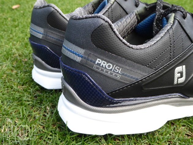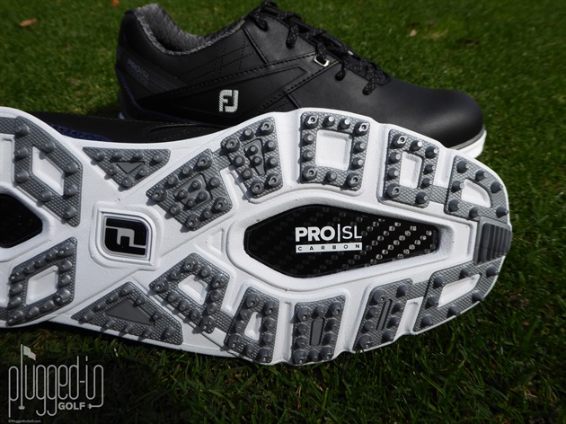 The main performance difference between the Pro SL Carbon and the standard model is the carbon fiber inlay in the sole.  In FootJoy’s words, it’s meant to provide “maximum stability throughout the golf swing and spring-like energy return with every step.”  Meeker noticed that the two models feel different when walking with the Pro SL Carbon smoothing out the walking motion.  He also felt that it provided additional lateral stability during the swing.