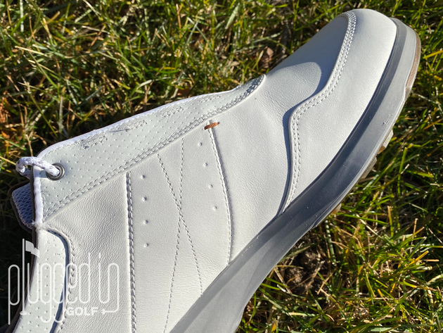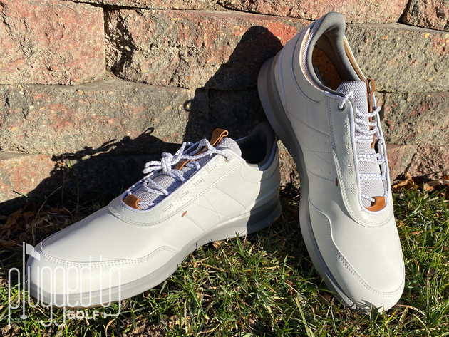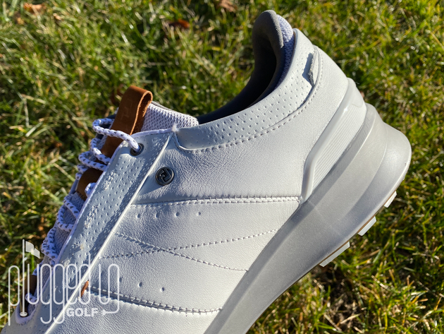 With the Stratos, FootJoy brings an upscale feel to a fairly minimalist design. The leather upper looks and feels high end, and the monochromatic motif keeps the focus on details like the stitching. Brown leather elements around the tongue add just a touch of visual interest.