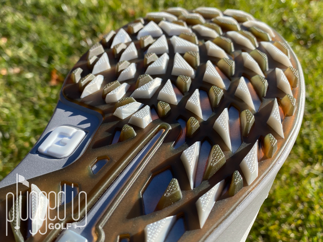 In wearing the Stratos both on grass and in everyday situations, I found that this sole delivers on its promises. While running errands, I was able to walk confidently on wet and icy streets and sidewalks. On both real and artificial turf, the cleats provided the solid traction I’d expect from a quality spikeless shoe. For anything short of all-out swings in muddy conditions, the Stratos will give you solid footing.