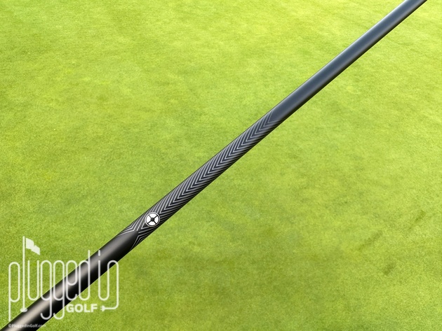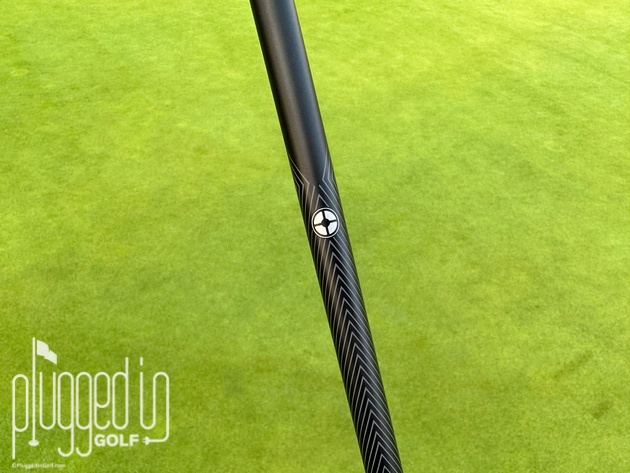 With a “logo up” installation, the AXIOM branding is visible. The A in AXIOM mirrors the repeating Vs that resurface under the AXIOM branding. As with VENTUS, Fujikura gave AXIOM a futuristic font to convey the technology involved in its design. The only color on the shaft is the tiny red Fujikura logo.