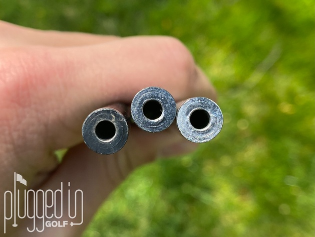 I started the testing by weighing each of the MC Putter shafts. All three were perfectly on spec at 115 grams. This puts them close to the average steel shaft in weight. In addition to weighing the same, each shaft has the weight distributed in the same way, so the swing weight won’t vary between shafts.