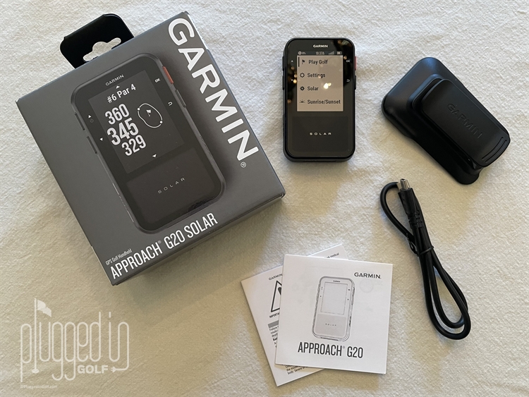 In the box, I found the Garmin Approach G20 Solar unit, a short USB-C cable, a belt clip, a brief start-up guide, and, of course, a safety booklet in 3000 languages. The graphic-centric start-up guide was simple and easy to follow. I already had the recommended Garmin Golf App on my phone and completed the pairing in seconds. I downloaded the full Owners Manual as part of my review process, but most users won’t find it necessary.