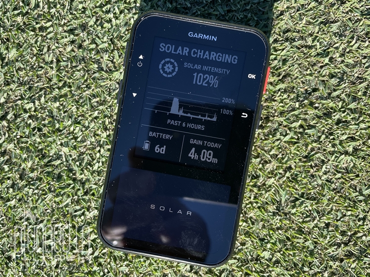 The Approach G20 came fully charged, but I set it outside in the sun for a few hours to learn more about the solar charging aspect. As an engineer I love the Solar screen with graphics that display solar intensity and charging over the past 6 hours. Solar charging occurs whether the unit is on or off. Garmin states that the G20 will operate for 30 rounds on a full battery. All of that is huge for me – I’ve been getting about 2 rounds with my Bushnell.