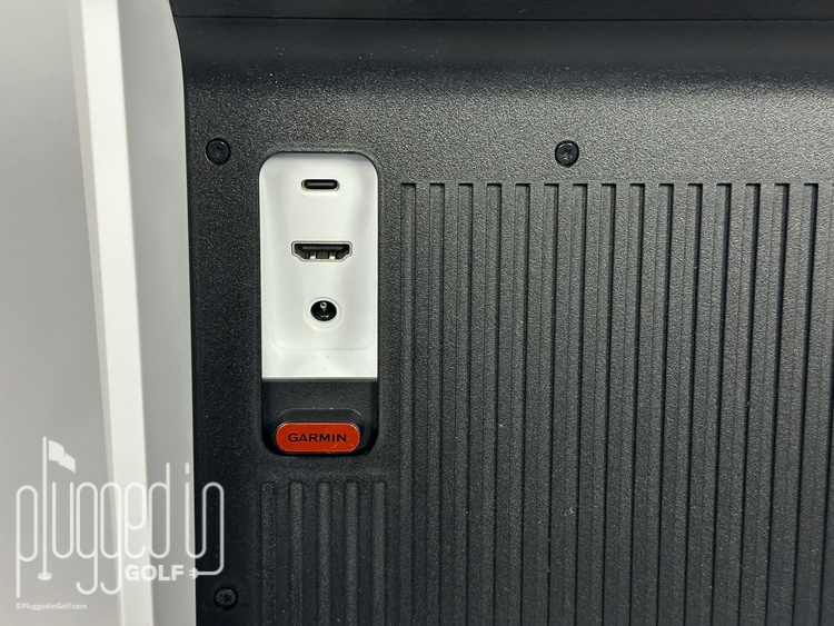 There are three ports on the back of the Garmin Approach R50 launch monitor – HDMI, USB-C, and a charging port. Garmin has included a clever sliding door to keep all of them clean and protected when they’re not in use. You can also connect the R50 via Wi-Fi and Bluetooth which is great for updating the R50’s software without plugging it in.