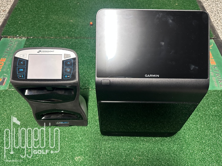 To test the accuracy of the Garmin Approach R50 launch monitor, I ran it head to head with my Foresight GCQuad [review HERE]. As an aside, the R50 dwarfs the GCQuad, as you can see above.