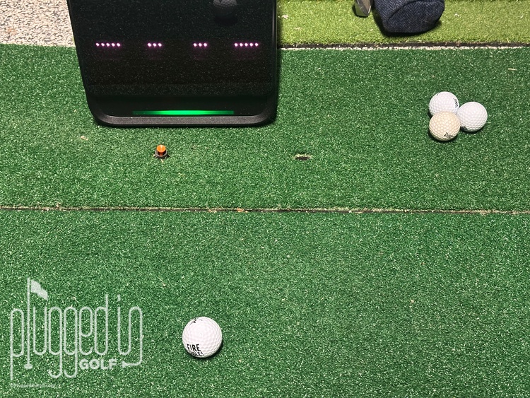 Using the Garmin Approach R50 launch monitor is incredibly easy. Power it up, choose your options from the touchscreen, and hit away. The screen shows you whether or not the ball is in the hitting area, and there is a green light (above) when you’re approved to hit, a red light if you’re not.