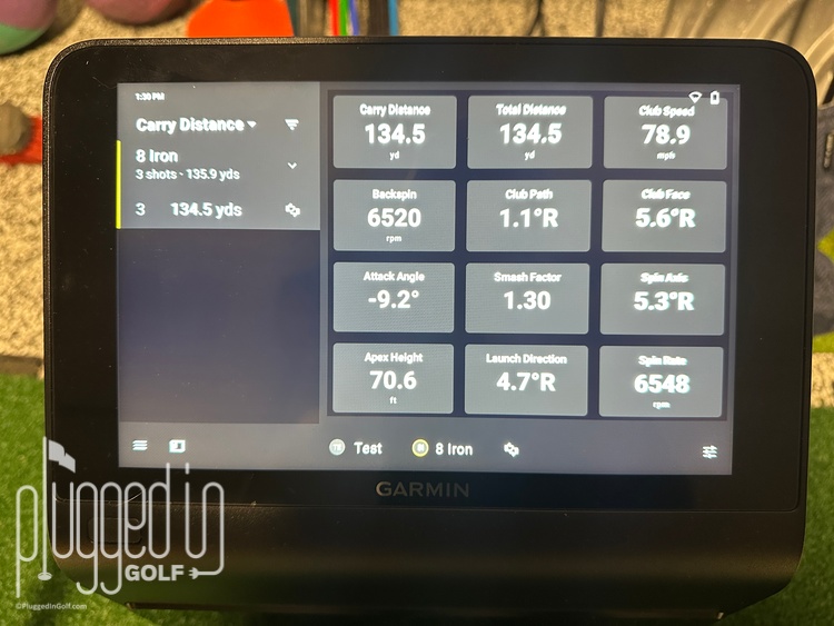 The ball data from the Garmin R50 was outstanding. The ball metrics that the R50 offers are ball speed, launch angle, spin, spin axis, launch direction, carry and total distance, apex, and distance offline. Across the board, I found these to be almost perfectly in line with my GCQuad.