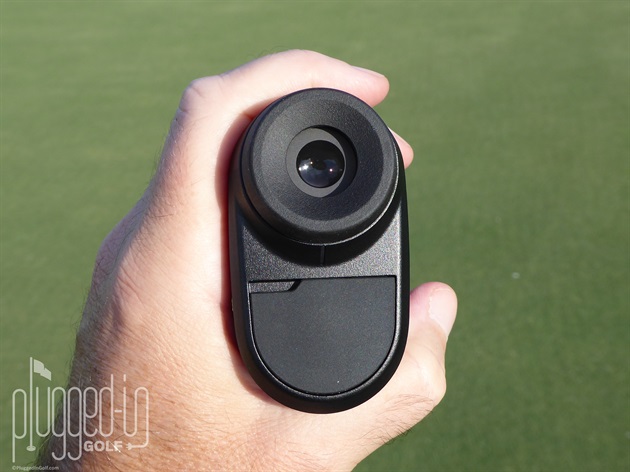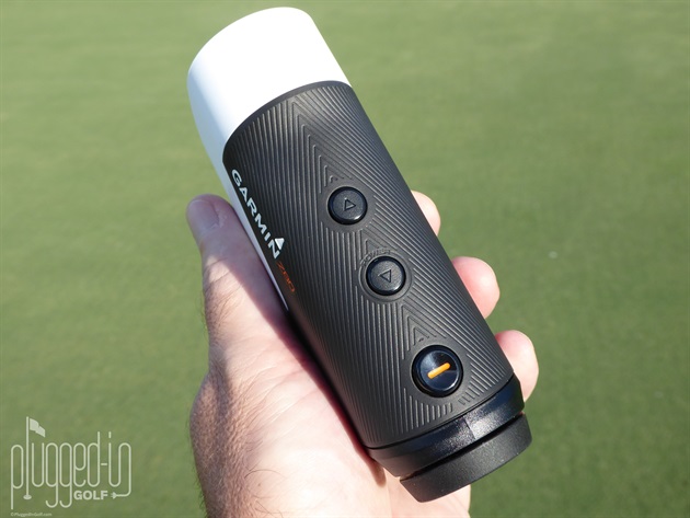 The Garmin Approach Z80 comes pre-charged and ready for use right out of the box. Three buttons on top provide all the controls. The down arrow button turns the device on and a few screens ask for input the first time: language, units, and driver distance. The up and down arrows on the screen correspond to the buttons on top. The larger button closest to the eyepiece functions as enter and for target ranging. It took me a few minutes to get used to the functionality of the buttons and various modes, but it’s intuitive overall.