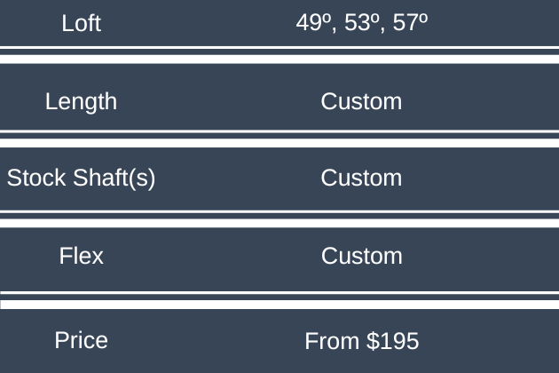 The GEOM Golf Tom wedge has a versatile sole and very consistent spin. Available through Twirled Clubs for nearly unlimited customization of looks, shaft, and grip. Limited loft availability – for now.
