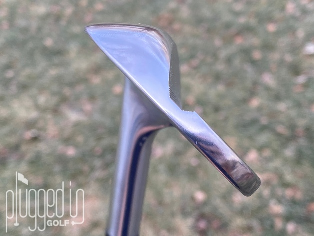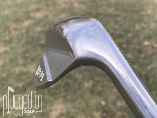 This discreet impact sensation on center sets up wonderful contrast on mishits. Shots off the heel or toe are louder, a “clack.” They also feel firmer though they don’t sting the hands. Overall, the Tom wedge provides excellent feedback to the golfer.