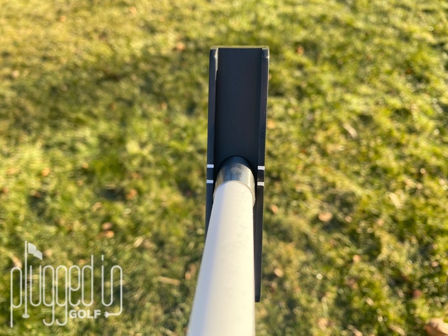 In my review of the GForce 7I, I noted that I had concerns about how the feel would transfer from the trainer to my normal clubs. This concern was even strong with the putter for numerous reasons: the different head shape, the large, reverse taper grip, and the heavy weight (650 grams total and over F6 swing weight).