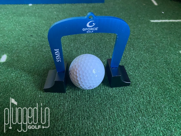 GForce includes a ball gate (below) with the putting trainer as a means of checking your start line. I like the concept of a gate, but this one is much better designed for outdoor use. The indoor bases are too light and need to be readjusted every time the ball rolls into them. Regardless, the gate is an essential part of the process as your smooth stroke means nothing if it’s not starting the ball on line.