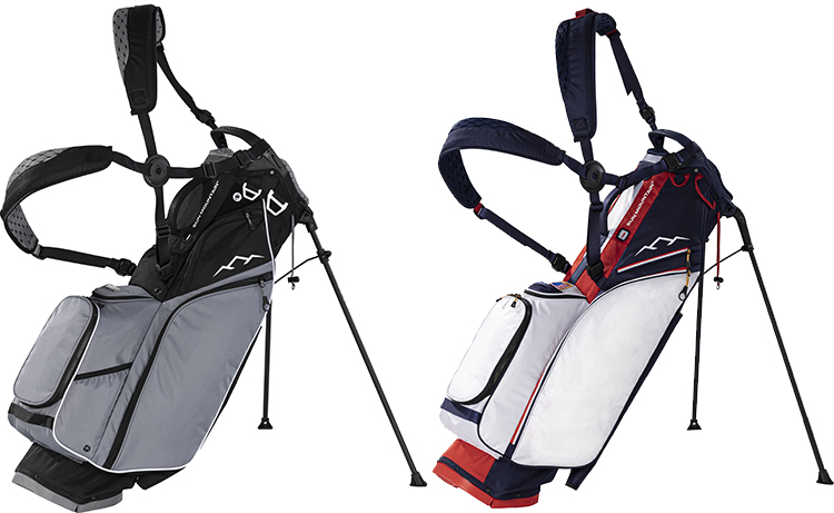 E-Series golf bags are offered in a broad range of colors including the expected black and navy, the ever-popular navy/white/red, the unique snow camo, and the limited-edition forest/sport navy/red as a tribute to the original Eclipse golf bag circa 1986.