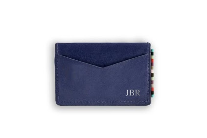 Buy any pair of shoes online between July 15-25 and receive a complimentary, custom-embossed, genuine calf leather card holder–The Wanderer—with signature Royal Albartross tape trim. Up to four initials may be blind embossed or foil embossed in gold or silver on black, brown or navy leather.