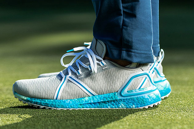 Solarthon features a full-length BOOST midsole for incredible comfort along with a spikeless Fishscale Traxion outsole to provide grip and stability when golfers need it most. We also included a film around the edges of the upper to make it water resistant and guard against that early morning dew when golfers first head out to the course. This limited edition features our PRIMEBLUE textile upper – a high-performance recycled yarn containing at least 50 percent Parley Ocean Plastic. It’s another example of how we are working towards our mission to help END PLASTIC WASTE.