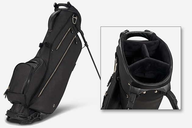 The Lite Lux is fully-equipped with state-of-the-art features like: Vessel’s patented Rotator Stand technology, carbon fiber legs, an exoskeletal base, and a strap system with an upgraded version of Vessel’s patented Equilibrium Strap. It highlights Vessel’s signature tour-grade leather with the premium crosshatch pattern seen on their leather goods. Fine details like: 3-point hand-stitched leather carry handles, metal YKK zippers, chrome accents, and matching rain hood, top off the high-end feel. The carry-stand has dedicated pockets for: apparel, hydration, rangefinders, golf balls, tees, and all essential golf gear.