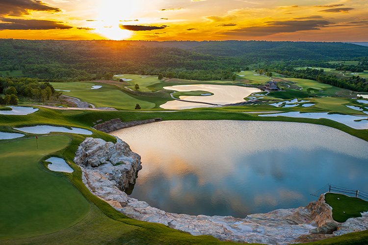 Golfers will traverse steep mountain trails and lush zoysia approaches leading to undulating bent grass greens, each hole offering a new surprise. The course itself is a signature loop the likes of which have never before been seen in golf. Players will drive carts through cascading waterfalls, cross through swift flowing creeks, and journey into a dramatic cave system—culminating in a tee shot launched from inside the cavern through a waterfall!