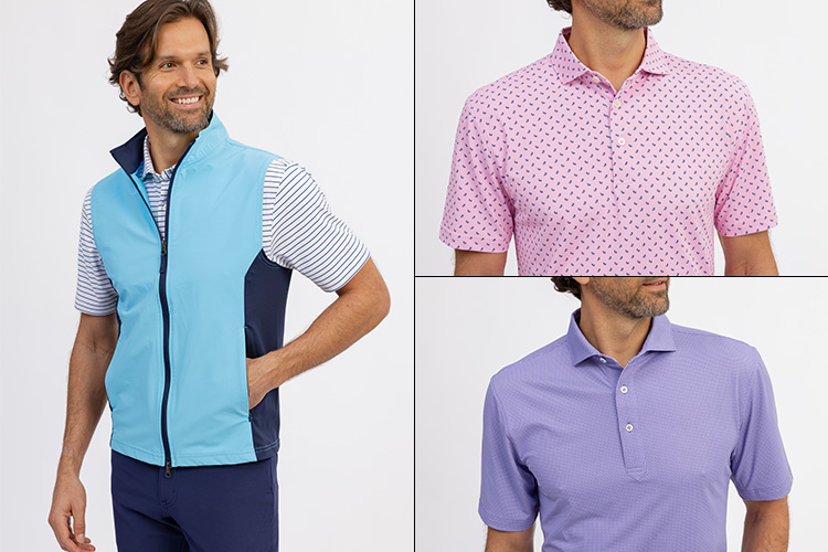 The standout colors in the Riviera Collection include Viola, a soft purple; Jam, a delicious strawberry red; Ciel, a soft warm blue; Admiral, a rich dark blue; Navy, a traditional blue and Bloom, a balanced pink. Each were selected to evoke the warmth of the French coast, while breathable, lightweight fabrics yield improved comfort and performance. In addition, an expanded collection of sports shirts and layering items feature classic plaids and seersucker designs, while new shorts and pants offer improved fits and fabric technology.