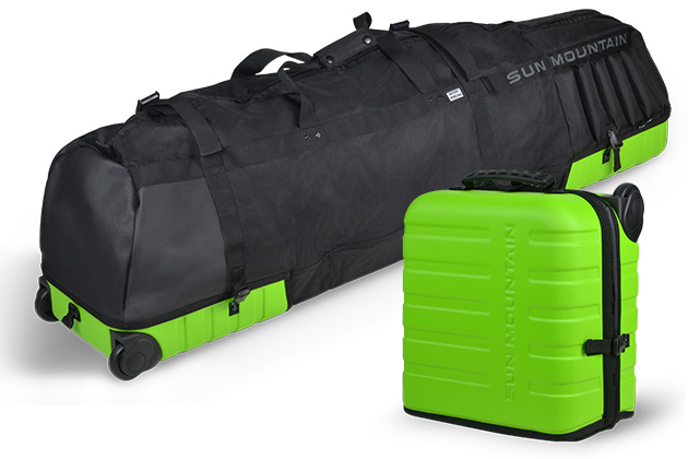 MISSOULA, MT – The innovators at Sun Mountain have done it again with the introduction of the Kube golf travel bag. Kube looks like an ordinary, small, plastic suitcase but unbuckle it and it opens into a full-sized golf travel bag. Kube’s folded size is merely 9″ x 13″ x 14.5″ and weighs only 6.8 lbs.