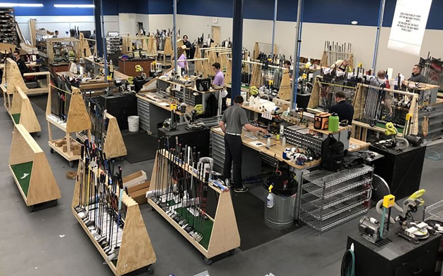 Initially, the Club Champion’s build shop encompassed a cozy 1,000 square feet, split between build stations, PUREing stations, the shipping team and storage. Now, after a complete remodel and expansion, the shop covers over 10,000 square feet. Previously, employees operated between only six build stations; builders now have access to 15 stations.