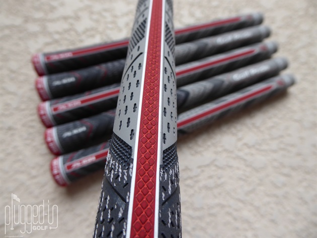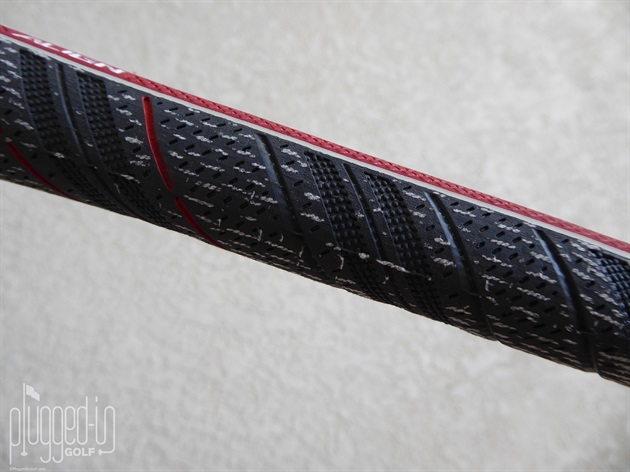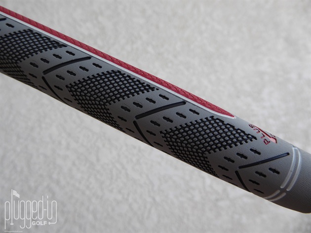There’s no missing the raised ridge on the Golf Pride MCC Plus4 ALIGN. Before it’s installed, however, the grip feels round and the channel texture inconsequential. This is important to recognize if you’re choosing grips laid out on a table at your fitter or loose in bins at a store. Raised by installation on the shaft, the ridge is best described as a channel with edges, not a rounded hump. The micro diamond pattern of the red strip has an aggressive texture, and the material is noticeably firmer than the rest of the grip.