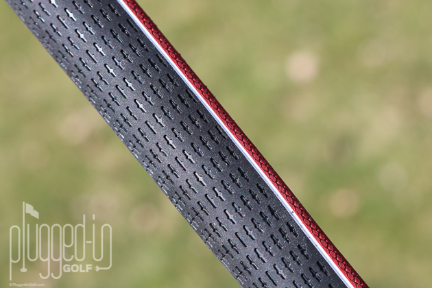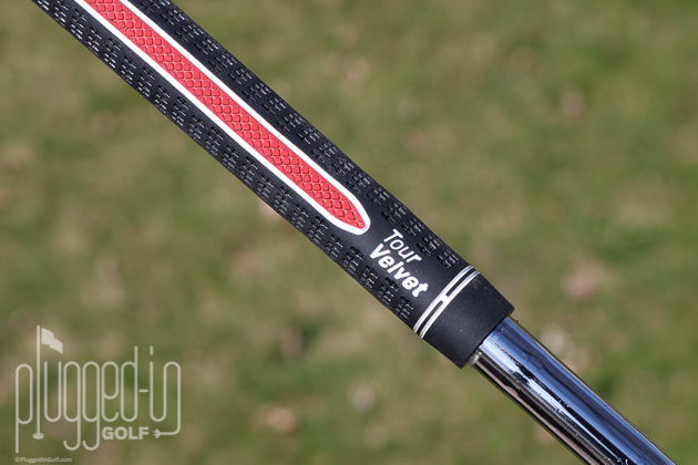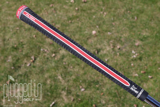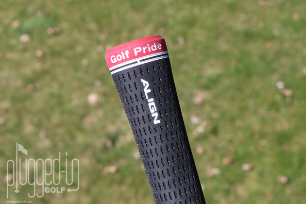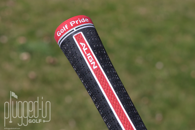The Tour Velvet isn’t a flashy grip – all black with white branding. The ALIGN version does add a little more spice with a red band around the “Golf Pride” logo and a red cap. Of course, what makes it stand out most is the bright red ALIGN stripe along the back of the grip.