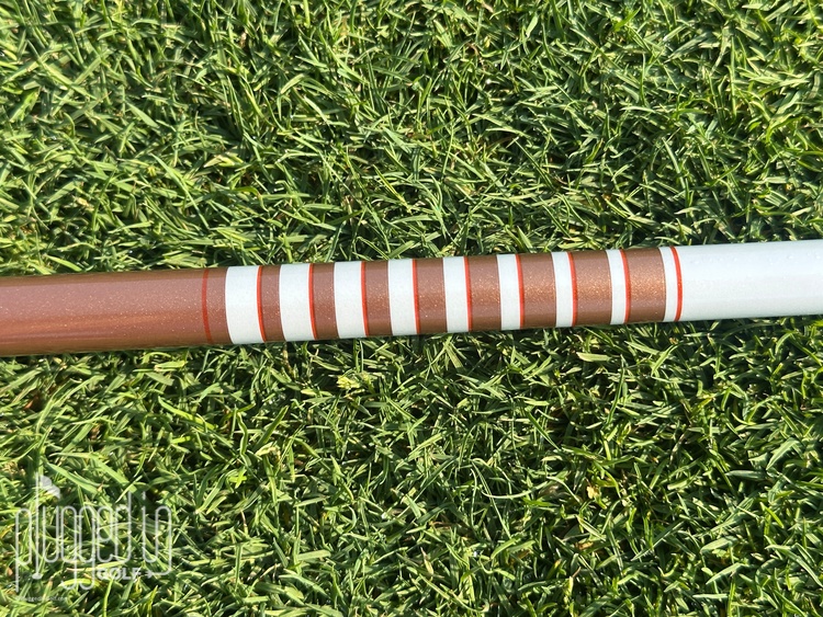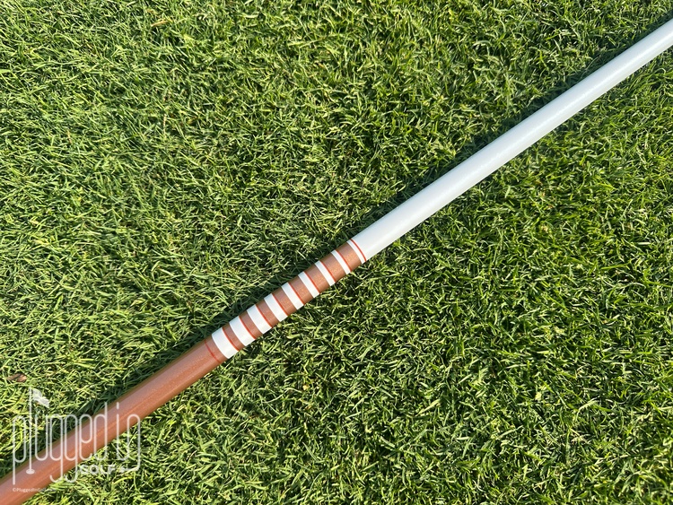 What makes the Tour AD GC unique are the colors. Graphite Design calls it “pearl white with bronze and orange accents”. The white lower portion sets it apart from every other Tour AD shaft except the Tour AD HD [review HERE]. The bronze is very subdued, more brown than orange, which helps it to stand apart in a field that typically focuses on bold, bright, primary colors.
