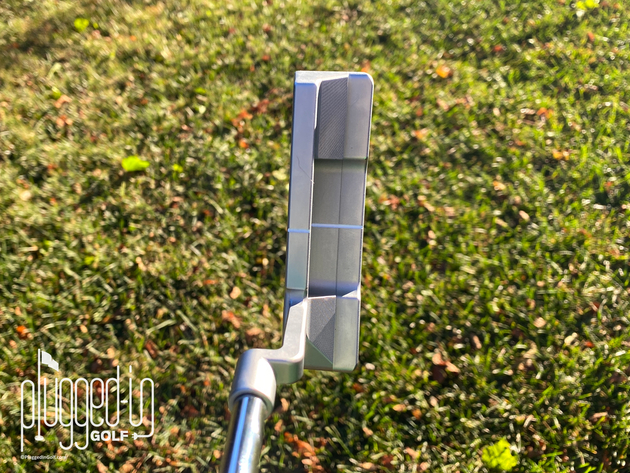 The first thing I noticed when I set this putter down is that it’s a bit wider than what I consider standard. This extra width comes from longer bumpers. It’s not a full-on widebody Anser, but it’s somewhere in the middle.