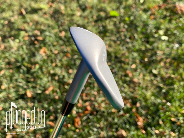I found that this translated to two things.  First, these wedges do not want to dig.  I was testing in sloppy fall conditions, and the sole consistently worked its way out of the turf.  Second, the leading edge does rise noticeably when you open the face.  I didn’t have any problems hitting soft, high lofted pitches with the Signature Wedge, but if you struggle with that shot or are sensitive to a slightly elevated leading edge, you might consider bending the lofts down or grinding away some of the trailing edge.