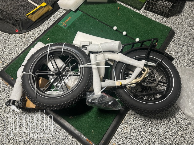 Mistake #1 happened right out the gate: trying to assemble the bike at 11PM after completing a road trip (10 hours of driving that day) and coaching two hours of softball. The wiser half of my brain knew I should be fresh when I attacked this project, but it lost the fight to my enthusiasm. I cut open the box and found the HeyBike Ranger S largely assembled but wrapped in foam and plastic, as you see above.