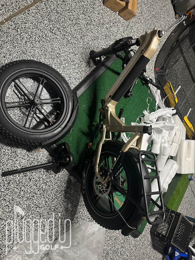 One thing needs to be mentioned at the start: the HeyBike Ranger S is not ready for the course out of the box. There is a rack on the back, but it’s not suitable for carrying clubs without substantial jerry-rigging. Never one to risk the safety of my clubs, I opted for the DivnickGolf E-Bike Golf Bag Carrier [review HERE] as recommended by my contact at HeyBike.